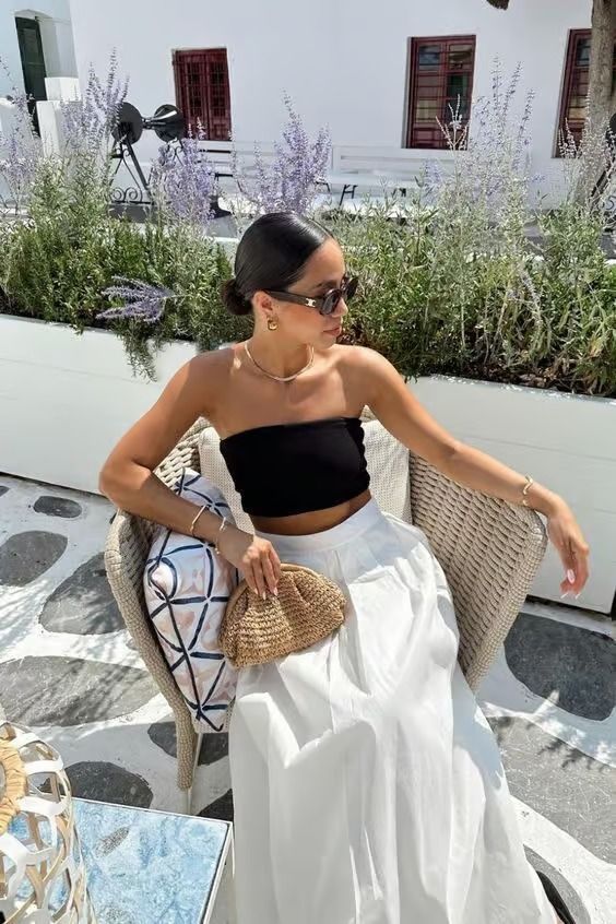 When walking around European cities, comfort is key, making it challenging to pack outfits that are both comfortable and chic. Fortunately, the maxi skirt and tube top combination is a game-changer.