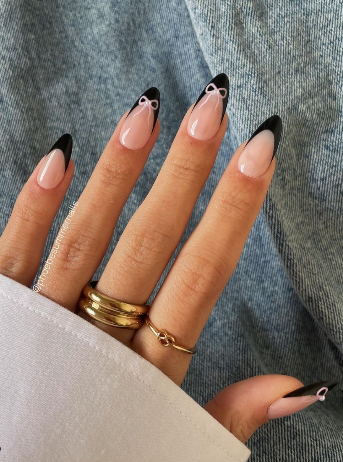 A classic French manicure is timeless, but for fall, if you’re craving a touch of edginess, try a French manicure with dark-colored tips. This look is chic and versatile, combining elegance with a subtle hint of rebellion, making it the perfect way to add depth and drama to your style. Here are some inspiration pics for this type of look: