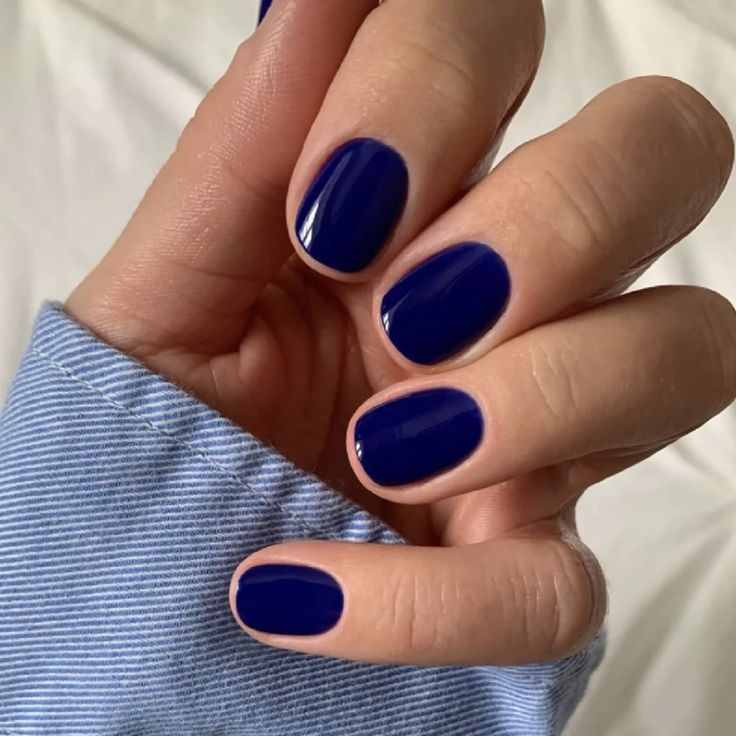 Achieve a simple navy blue manicure with the shade “Blindfold Me” by Ella+Mila or “902 Pied-de-Poule” by Dior.