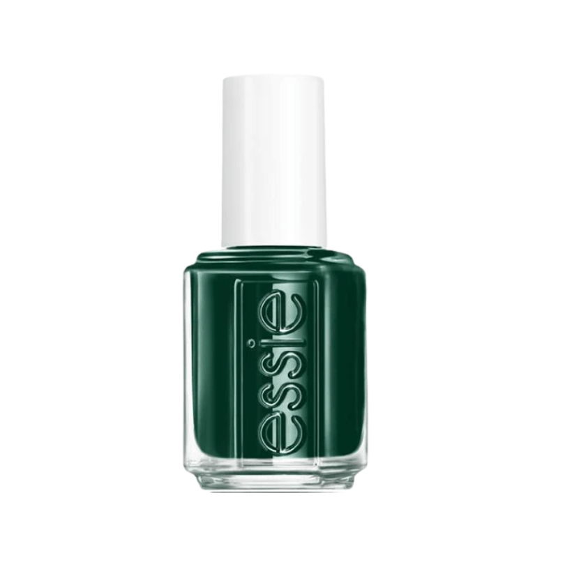One way you can achieve this look is by applying a deep green shade such as Essie’s ‘Off Tropic’ nail polish as a base color and then topping that off with Essie’s ‘Cosmic Chrome’ nail polish!