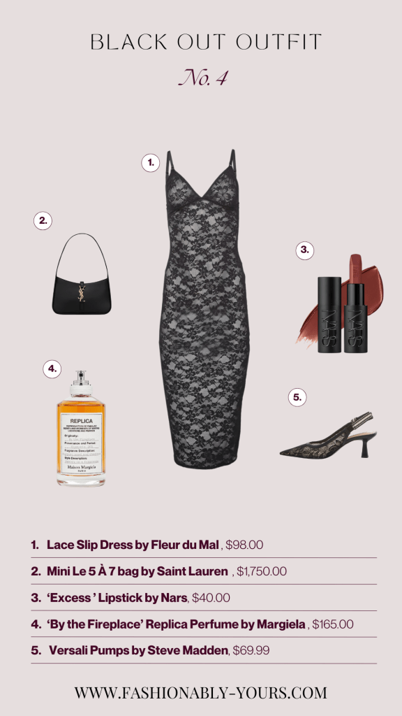 Not only is it easy to find accessories that match black ,it is also a color that will bring out your inner confidence which is important during date night. For this black out look, I decided to choose an all lace black maxi dress that can be paired beautifully with black kitten heels.